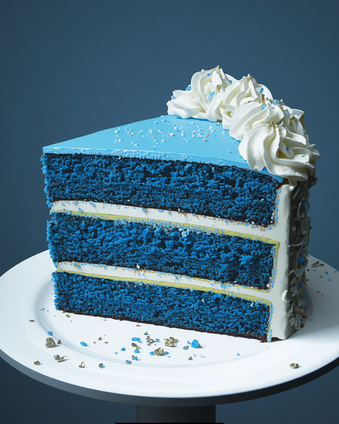 Blue Velvet Cake is a colorful twist on the classic Red Velvet Cake—basically the same soft, moist cake but dyed a vibrant blue instead of red.