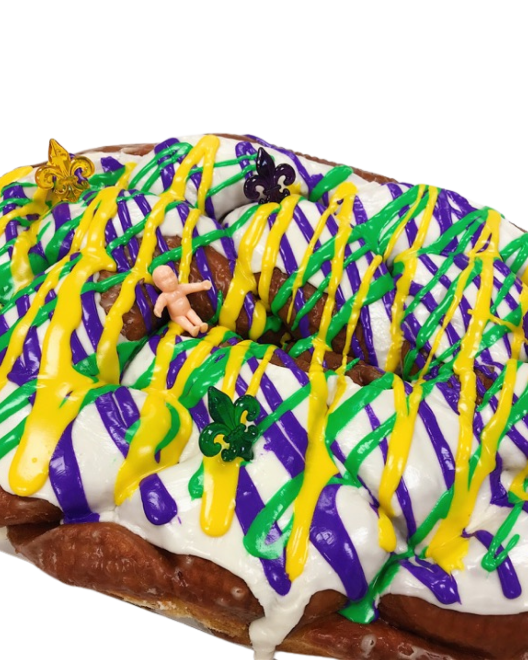 Meche’s King Cake is known for its soft, donut-like texture, sugary glaze, and festive appearance. Meche’s brings a unique twist to the traditional king cake that keeps locals—and visitors from afar—coming back for more.